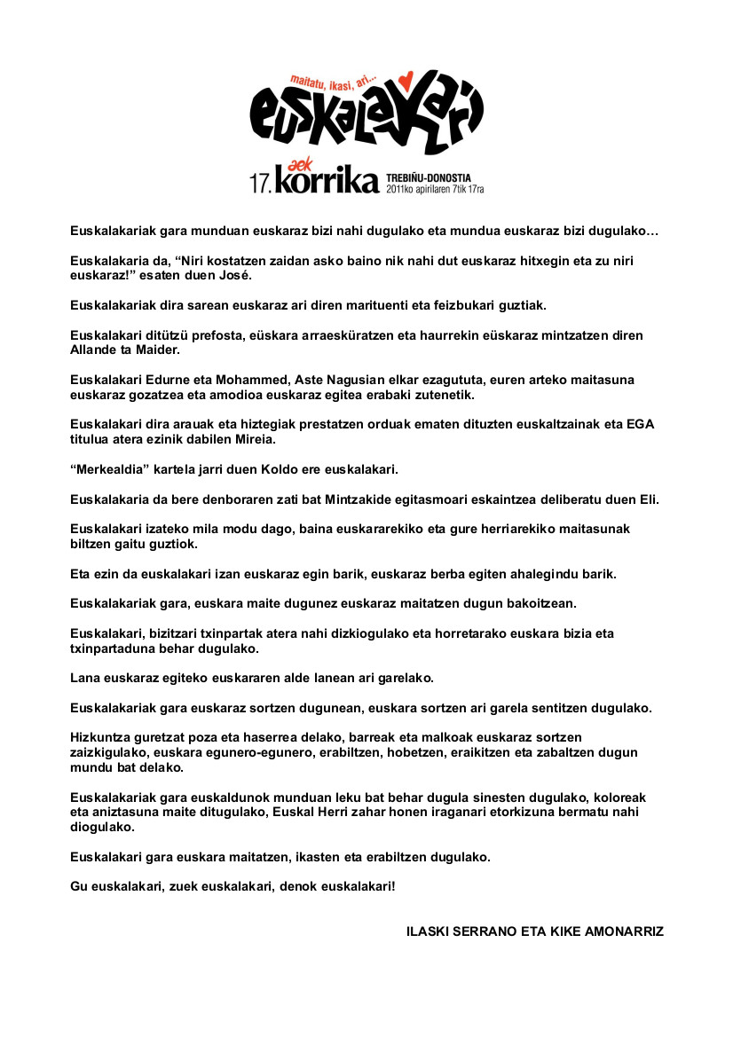 18. KORRIKA: Eman euskara elkarri. Solasladiak